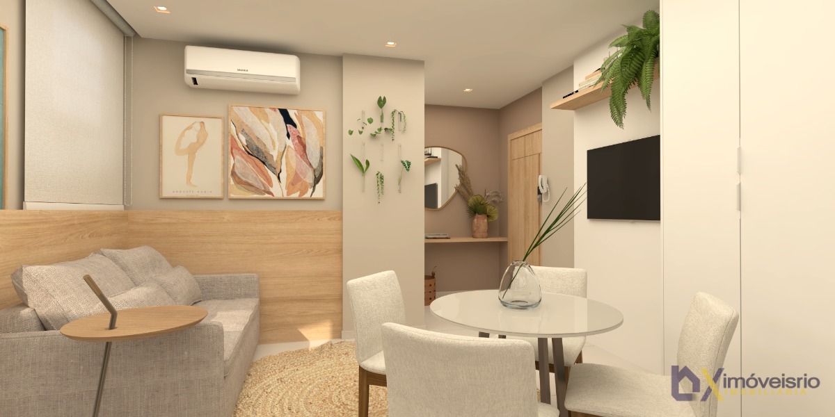 Studio com 38,08m², varanda com áre...